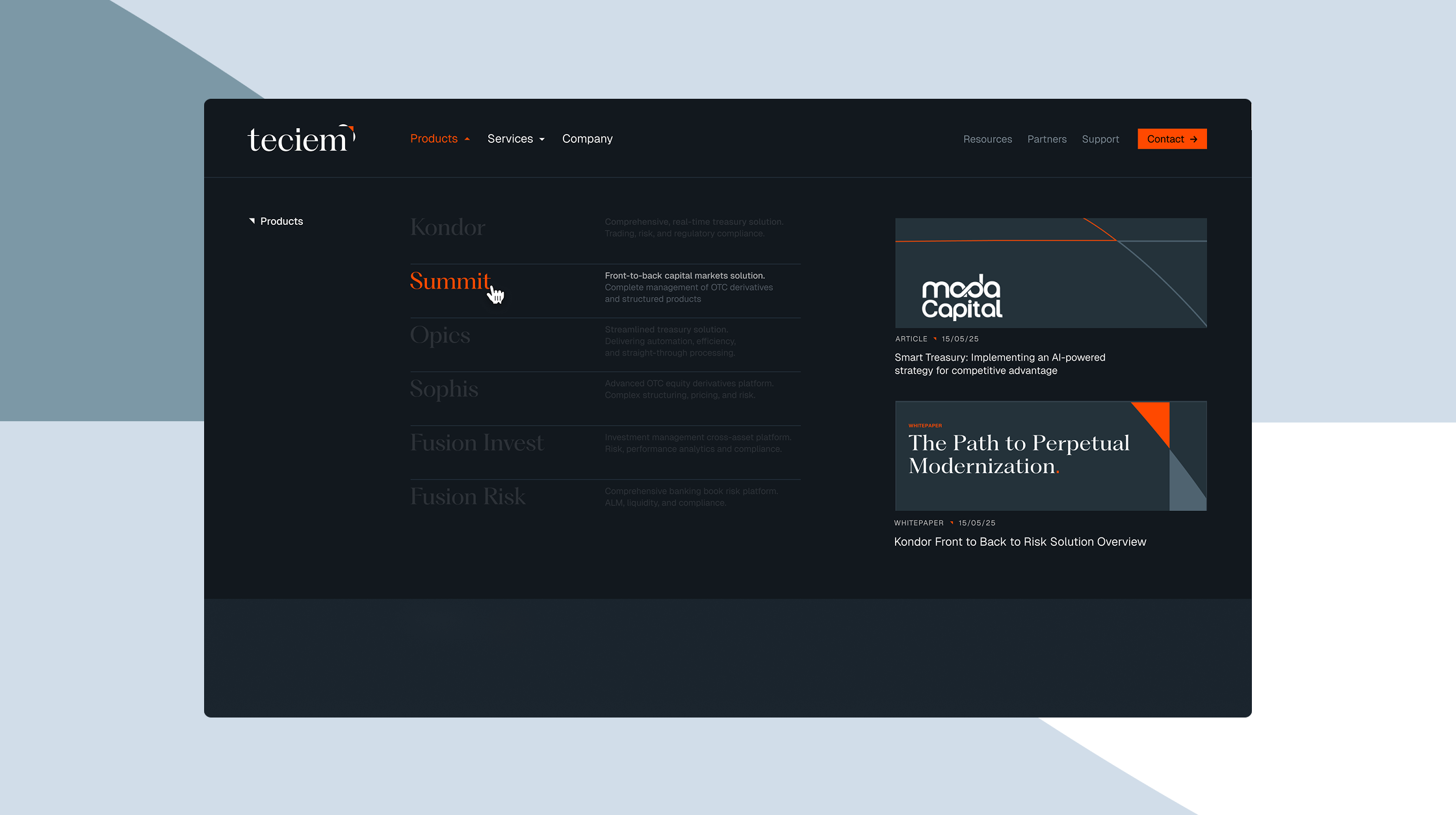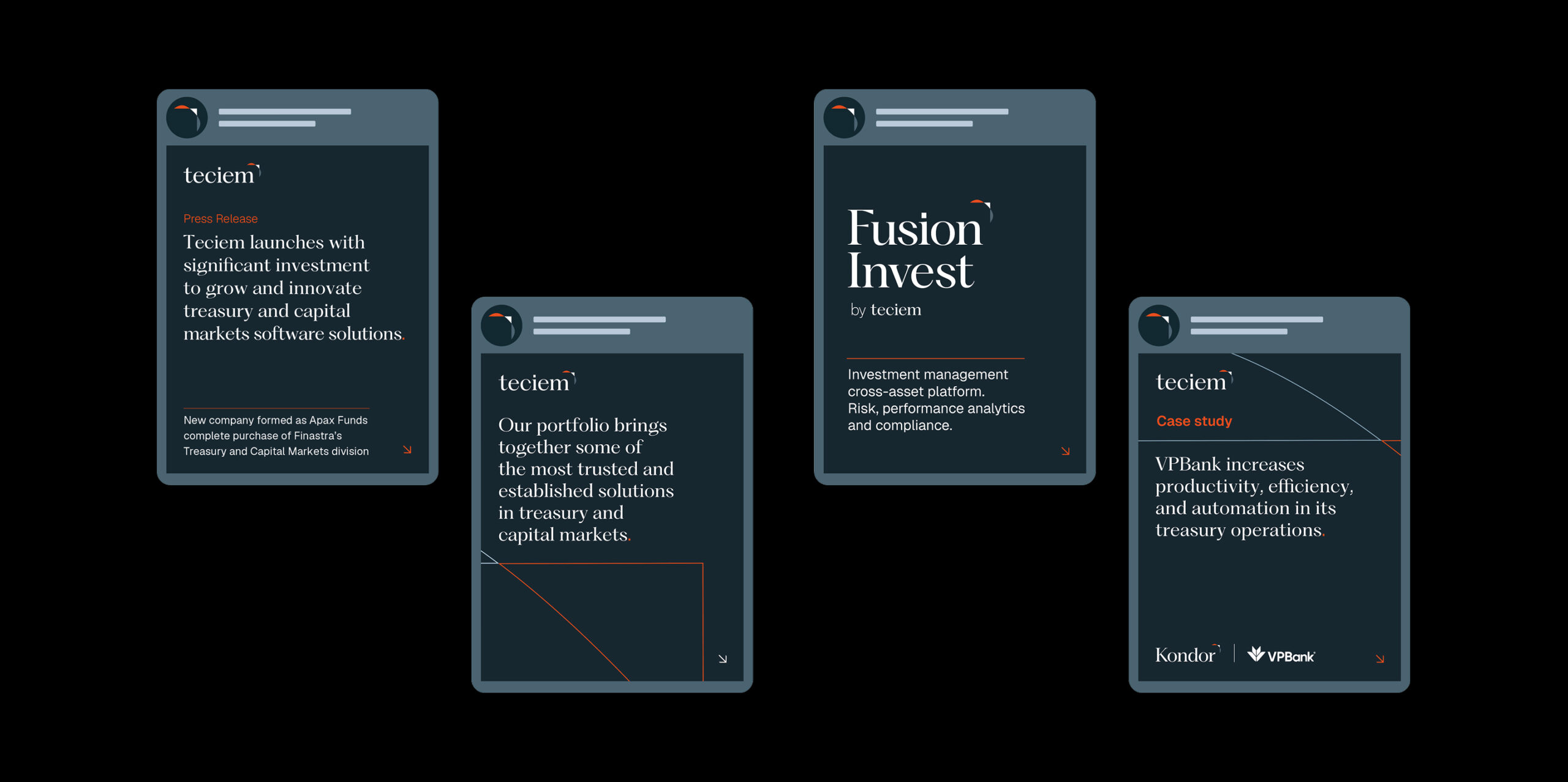 Affectionately known as – and widely recognised as ‘TCM’, becoming Teciem enabled internal teams worldwide to start a new venture – but to continue their existing narrative. An acronym that once stood for ‘Treasury and Capital Markets’ would now phonetically run through the new name, narrative and organisational DNA.